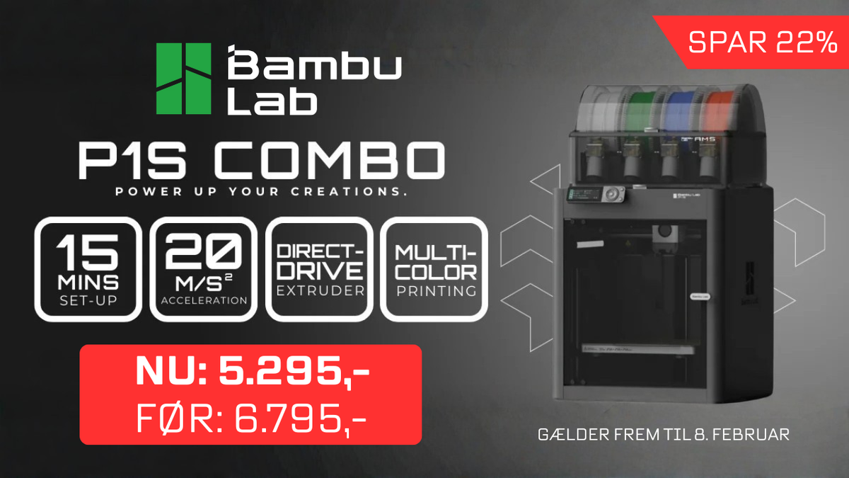 Bambu Lab P1S Combo På lager : 1-2 hverdage Afhentning er tilgængelig i 4000 Roskilde Spar 1.500 kr. 5.295 kr.