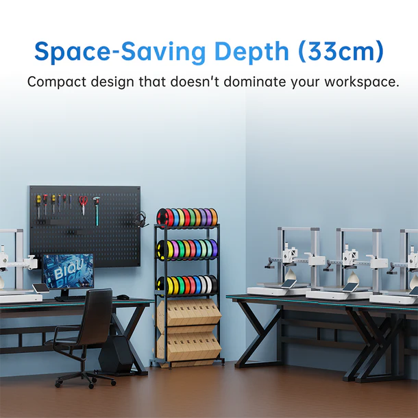 BIQU Panda Feed Rack er et modulært, stabelbart filamentopbevaringssystem, der holder dit arbejdsområde organiseret og dine spoler klar til problemfri print. Fremstillet af holdbare materialer med et let at samle design, sikrer det stabil filamenttilførsel og fungerer samtidig som en effektiv opbevaringsløsning. Perfekt til makers, studier eller hjemmeværksteder, der ønsker at optimere plads og arbejdsgang.