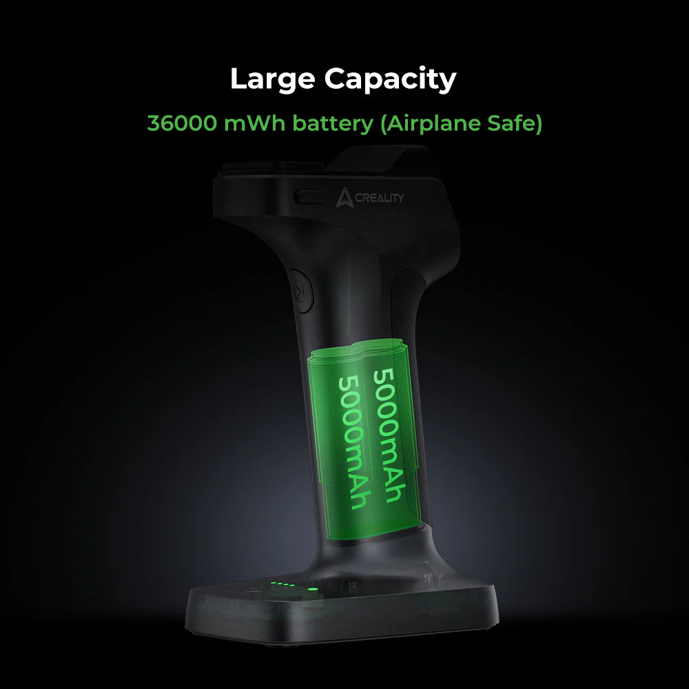 A high-capacity 36000mWh lithium battery allows for up to 4 hours of continuous scanning. The device supports fast charging via a Type-C interface and reaches 80% battery in just 1.5 hours.