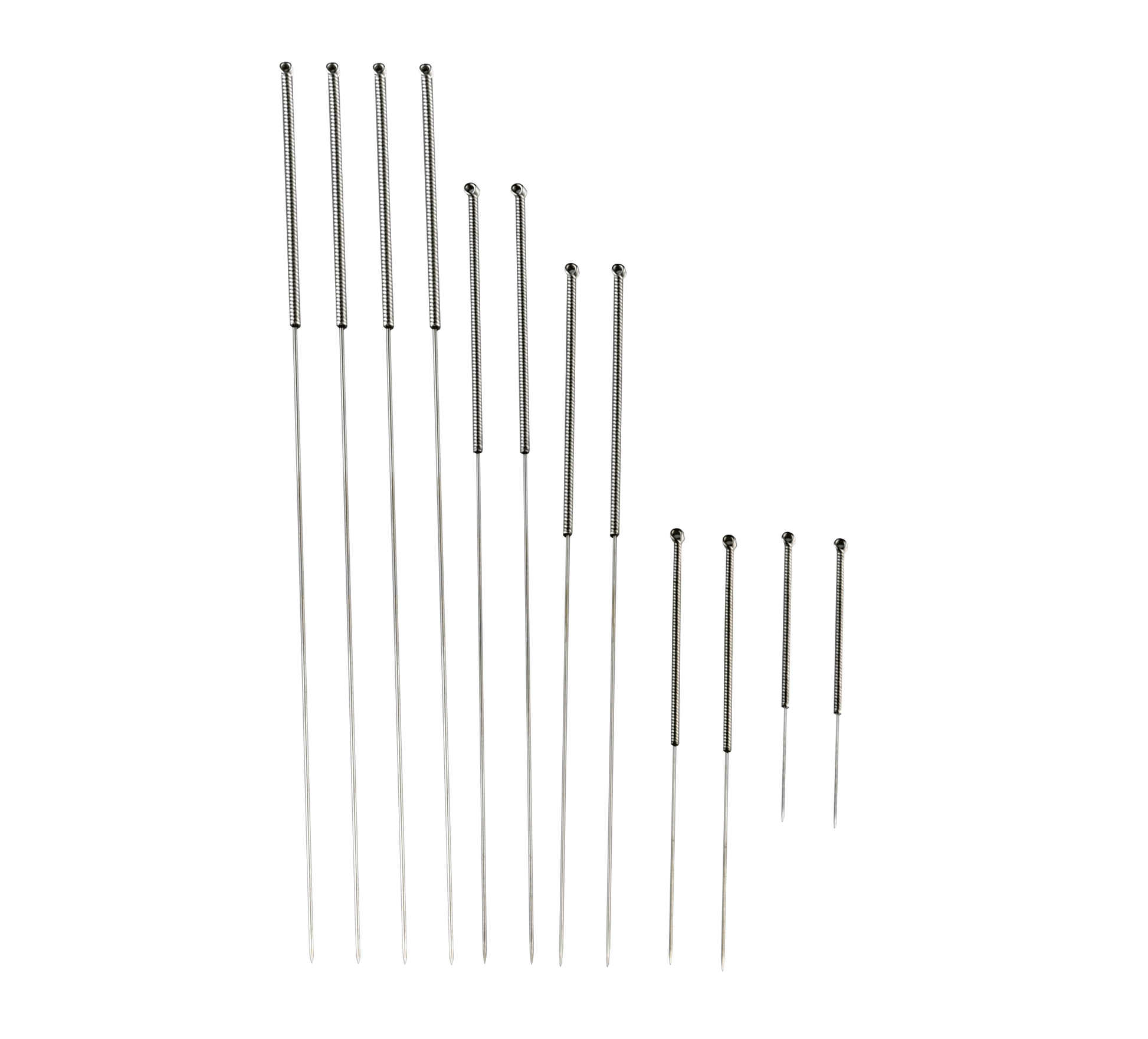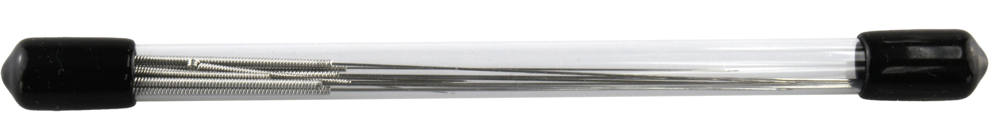 Hvert sæt indeholder 12 rengøringsnåle i fem forskellige størrelser og længder, en feeding path-rengøringstråd og en pincet.