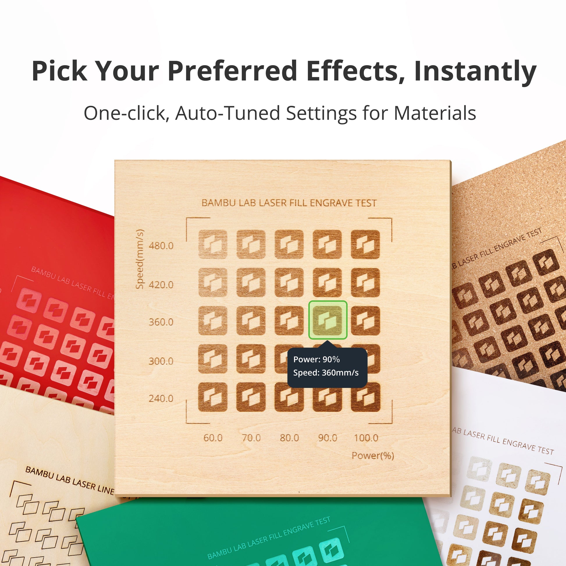 *For mere information om materialebearbejdning, se Material Library i Bambu Suite. Vælg blot den ønskede effekt, hvorefter alle indstillinger automatisk tilpasses.