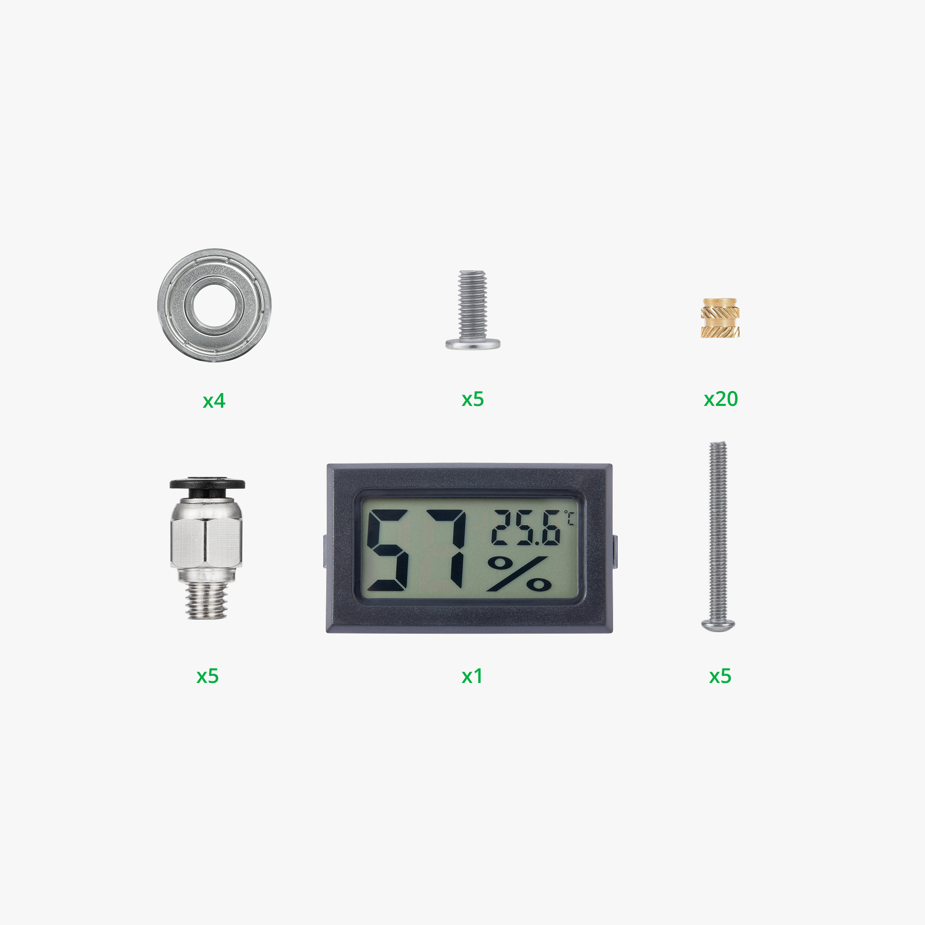 Produktet indeholder alle ikke-3D-printede dele til at samle en fuldt funktionel Retracting Spool Holder. For at fuldføre arbejdet skal du også downloade modelfilerne og 3D-printe de resterende dele.