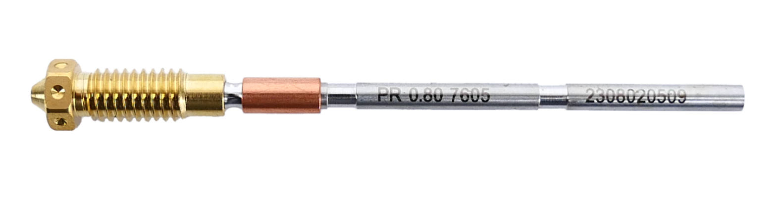 These high-quality 3D printing nozzles are designed specifically for use with Prusa's latest extruder - the Nextruder. Compatible with Prusa's MK4, XL and CORE ONE 3D printers, they feature a full metal filament guide, meaning the Nextruder's filament path is entirely made of metal. This helps improve the overall reliability of the printer and allows for faster nozzle changes.