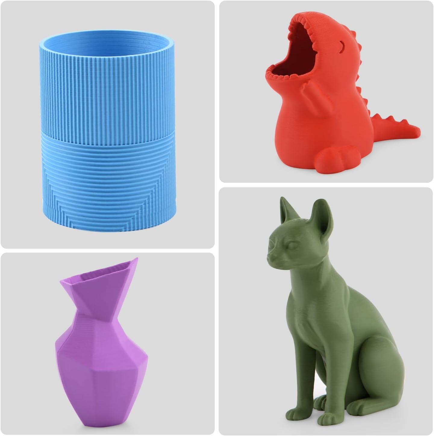 Matte PLA giver bedre overhang-performance og flere designmuligheder, så du kan printe mere komplekse modeller med et flot mat resultat.