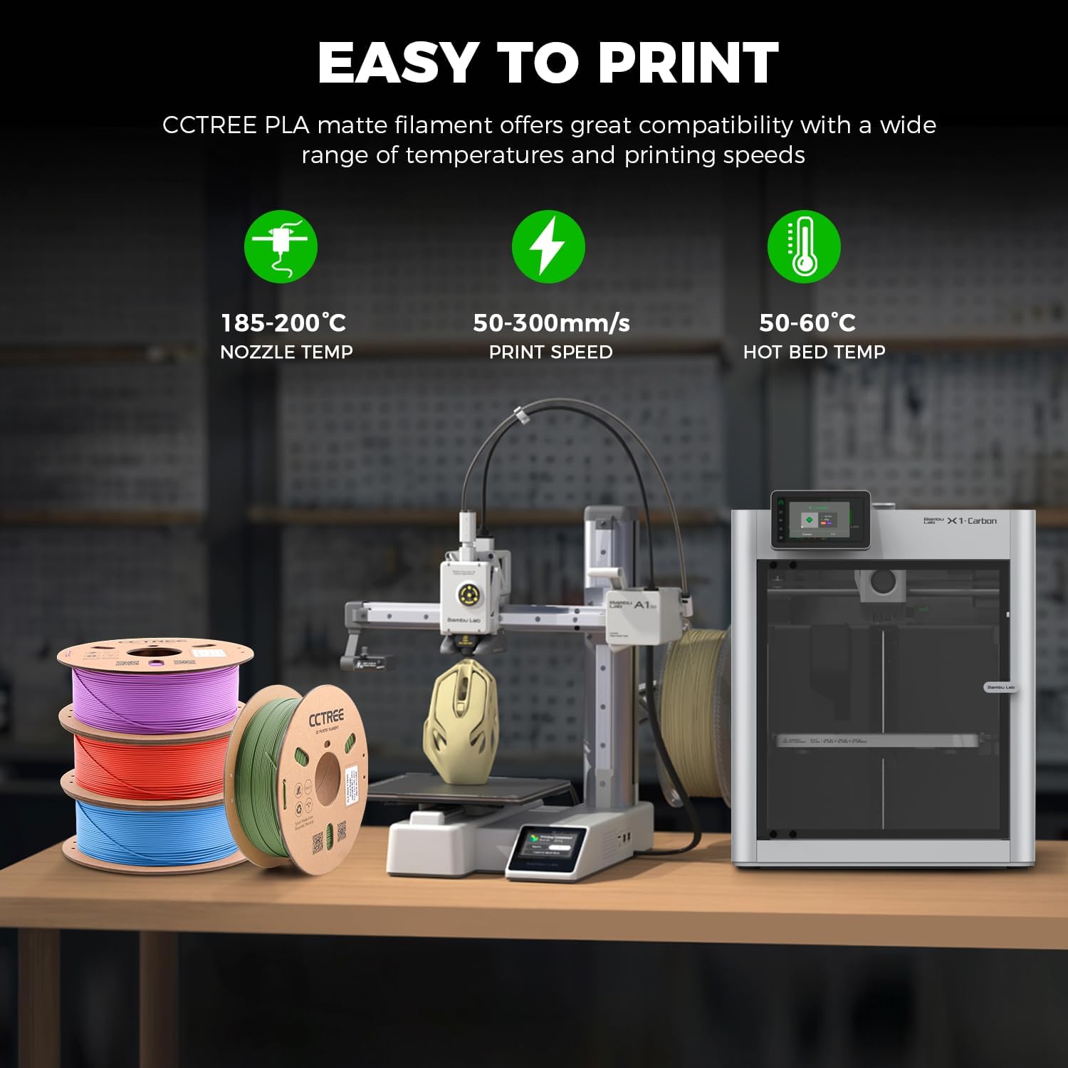 CCTREE Matte PLA Filament 1.75 mm – Mat finish og høj styrke