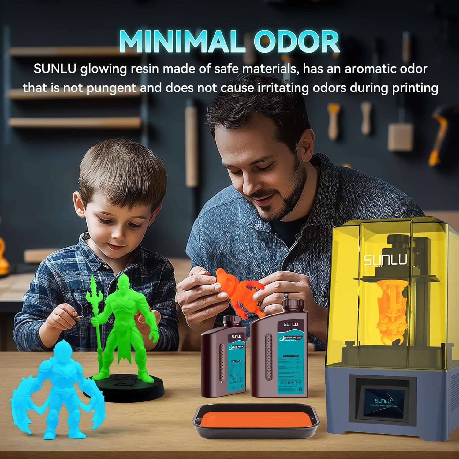 SUNLU Glow in the Dark Resin understøtter printbølgelængder på 365–405 nm og er kompatibel med 99 % af printere på markedet, inkl. LCD, DLP og SLA.