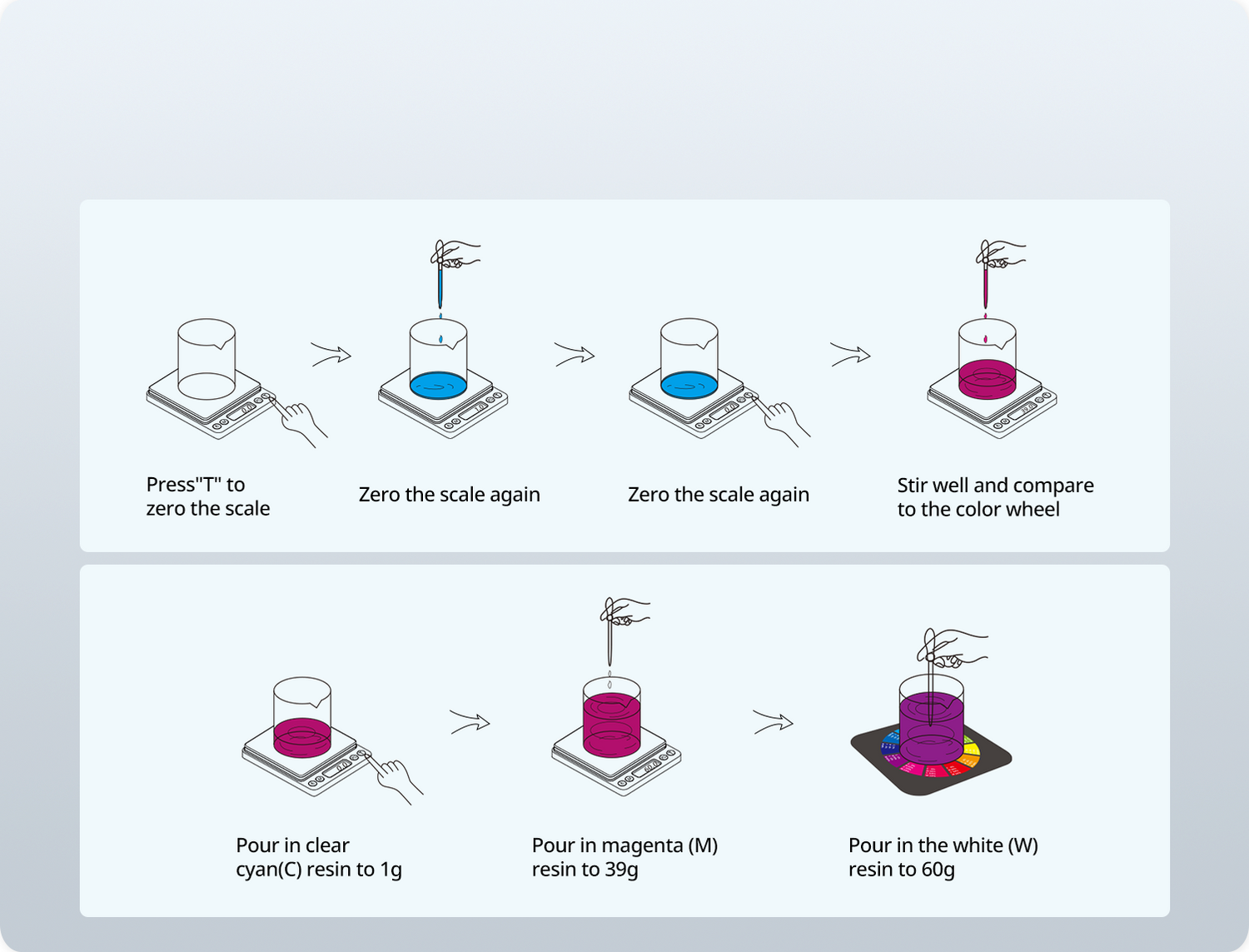 Step 2: Pour in clear cyan(C) resin to 1g