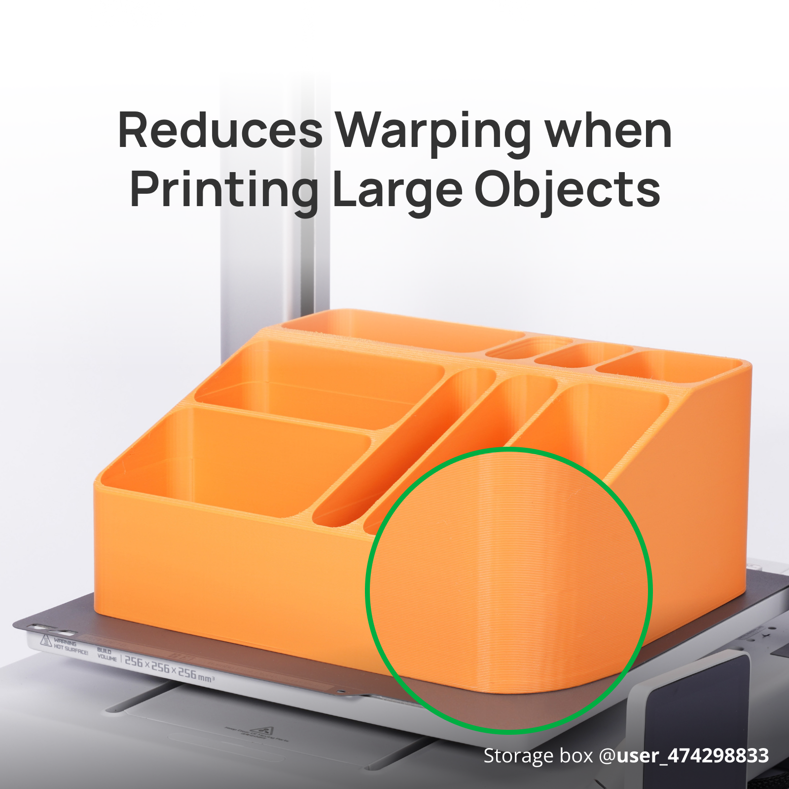 SuperTack-belægningen kræver kun en ekstremt lav varmepladetemperatur for at sikre, at de printede objekter hæfter sikkert. Det betyder, at du kan spare en betydelig mængde energi under opvarmning, hvilket fører til lavere elregninger og – endnu vigtigere – hjælper med at beskytte vores planet.