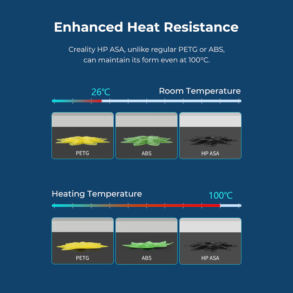 I modsætning til almindelig PETG eller ABS kan Creality HP ASA bevare sin form selv ved 100 °C.