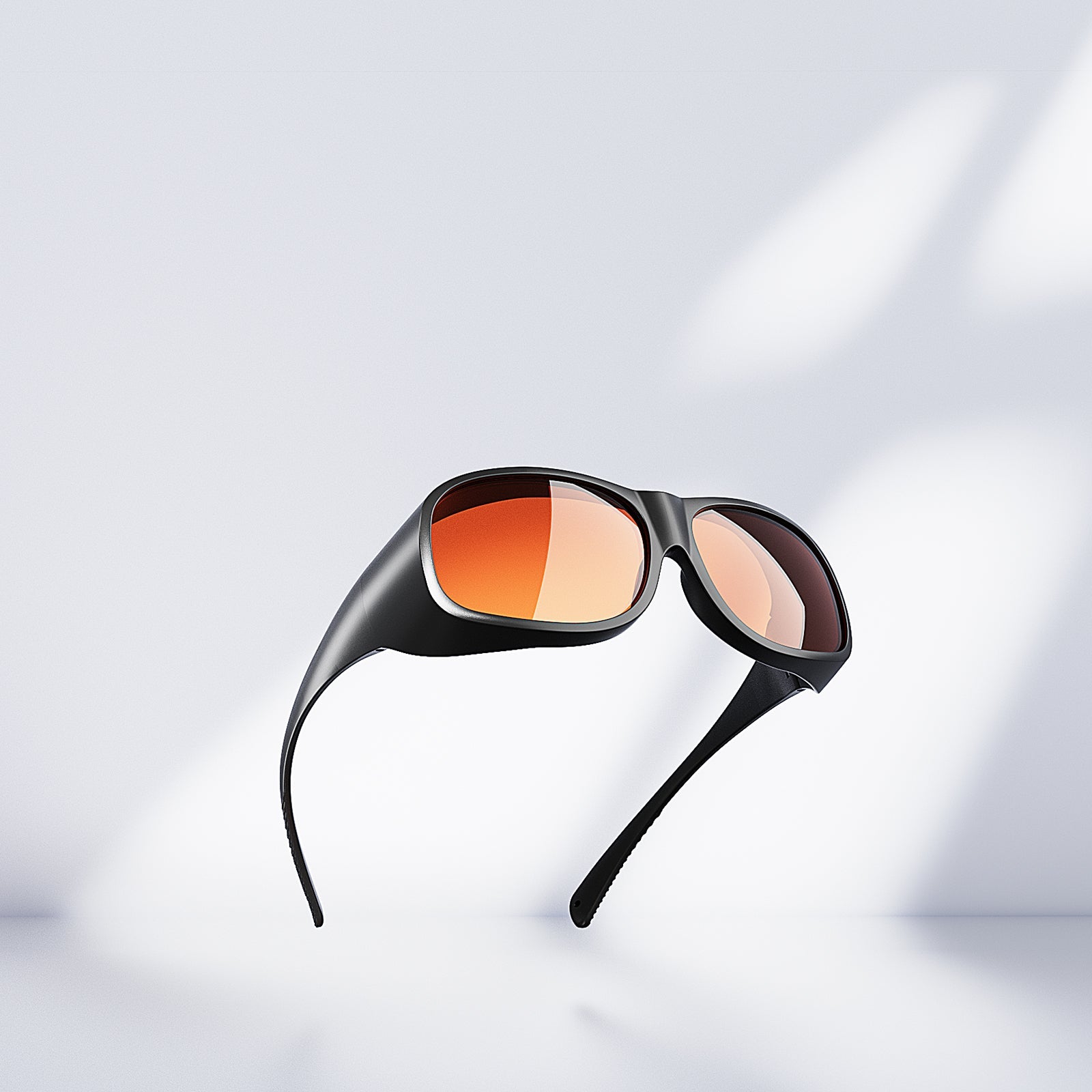 De medfølgende lasersikkerhedsbriller beskytter øjnene mod laserlys (180–540 nm). Installationen er nem: fjern bundpladen, monter fødderne, tilslut kablet, og justér grebet, så det passer til objektet.