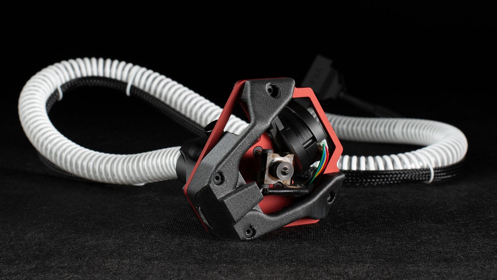 Printhovedet holdes på plads ved hjælp af magneter. Du skal blot tage den af armene, frakoble kablet fra toppen af printeren og udskifte den med en anden model. High-Flow-printhovedet med en hurtig-swap 0,4 mm Revo-dyse er det perfekte valg til hurtig prototyping med materialer op til 300 °C. I modsætning hertil når High-Temp-hovedet med en slibebestandig hurtig-swap 0,6 mm Revo-dyse op til 500 °C og muliggør udskrivning med materialer som PEEK, PEKK eller PEI (Ultem). Begge printhoveder er inkluderet med HT90 og hardwaren er kompatibel med alle Revo nozzle med diametre fra 0,25 - 0,8 mm.