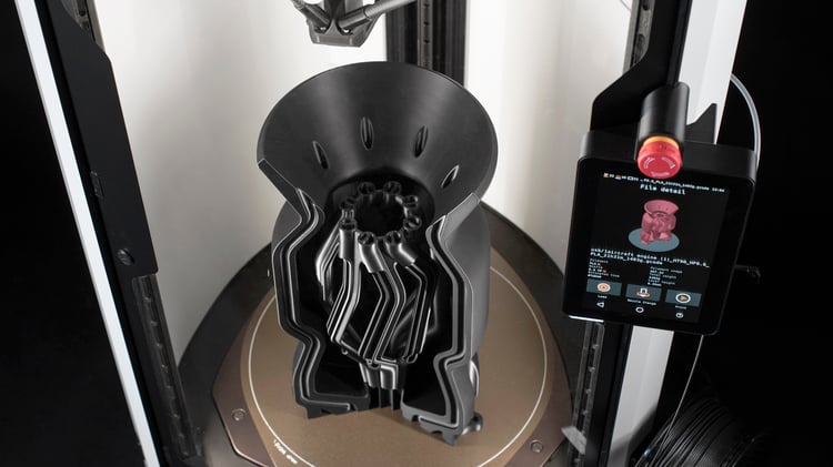 Printerens aktivt opvarmede kammer med et lukket HEPA- og kulfilter recirkulationskredsløb kan nå op til 90 °C, hvilket giver et optimalt miljø for selv de mest krævende materialer. Print store robuste objekter fra ABS/ASA uden negative bivirkninger, såsom vridning eller lagadskillelse, brug PLA til hurtig prototyping, og skab holdbare objekter fra PEEK eller PEI.